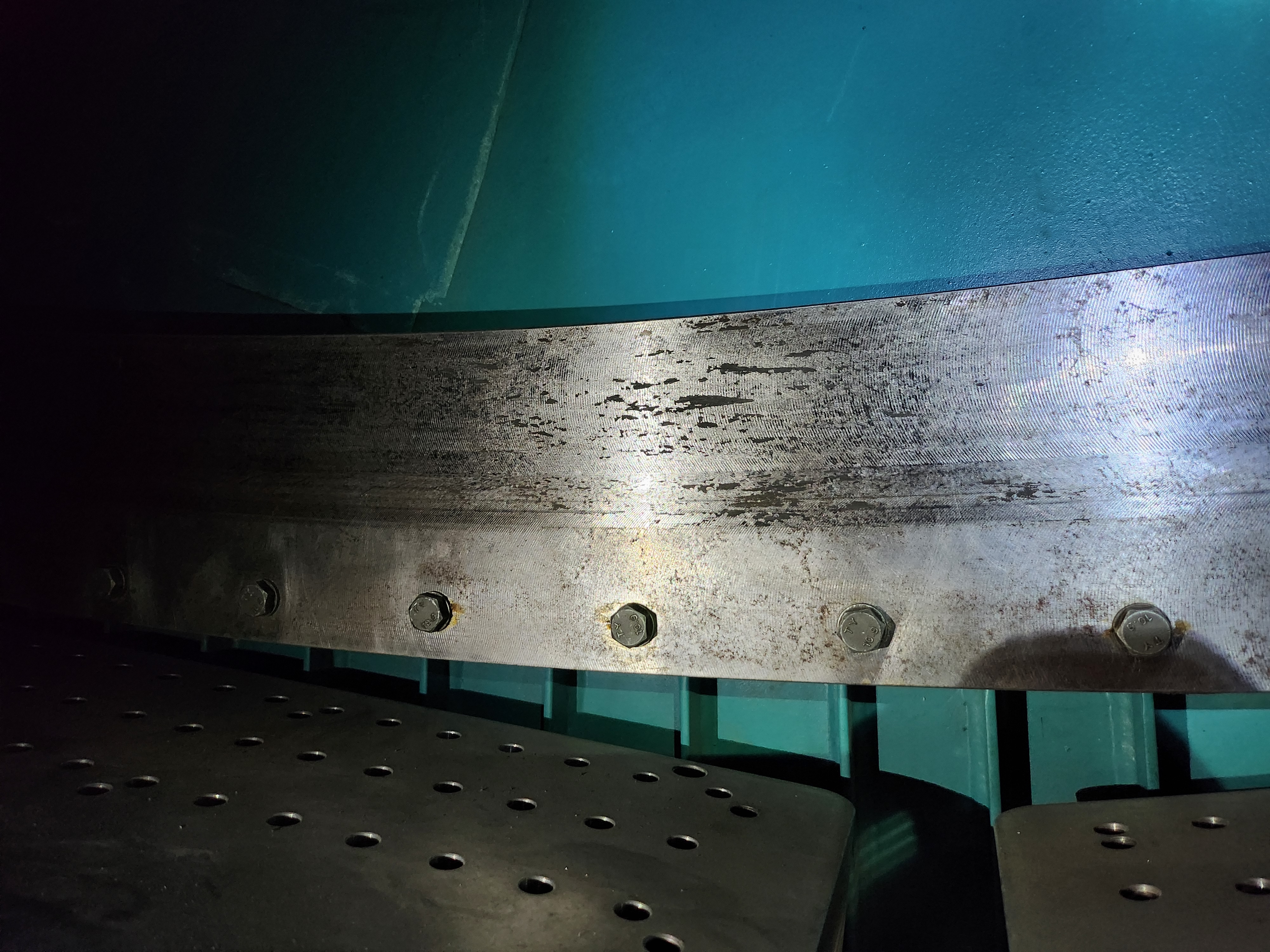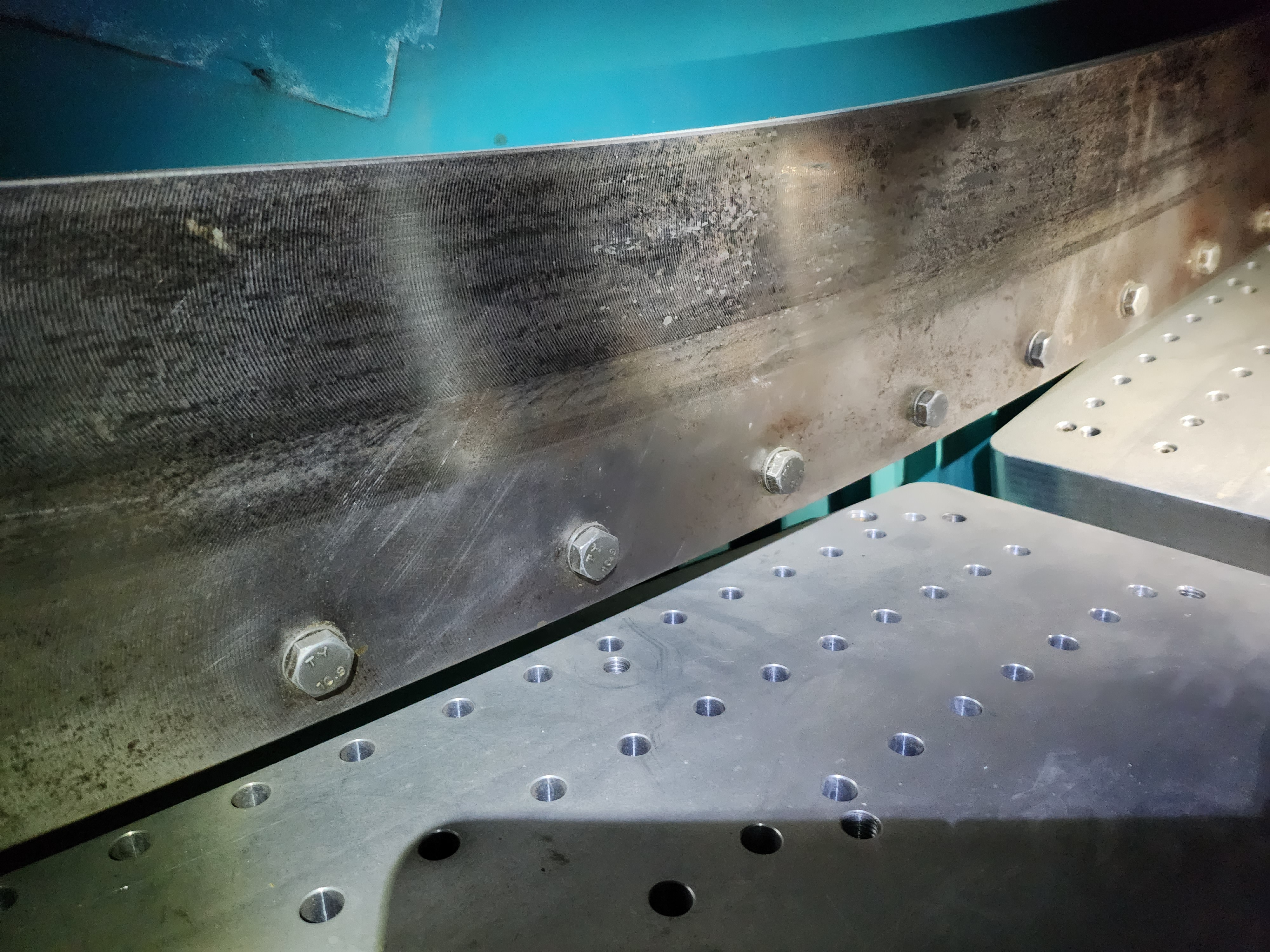 We checked for possible contact of the elevation brakes and the TMA during slews causing a dragging effect. This was done in a few different ways. First, by looking at the wear patterns between the break pads and the elevation axis at different elevations, there seemed to be some variance in the wear but nothing obvious (see images below or SUMMIT-7581). Then, we took infrared images of the TMA during slews. No hot points were detected. Finally, we measured the distance between the break pads and the TMA at multiple elevations while the breaks were released finding at no points did the breaks make contact with the axis during a slew.